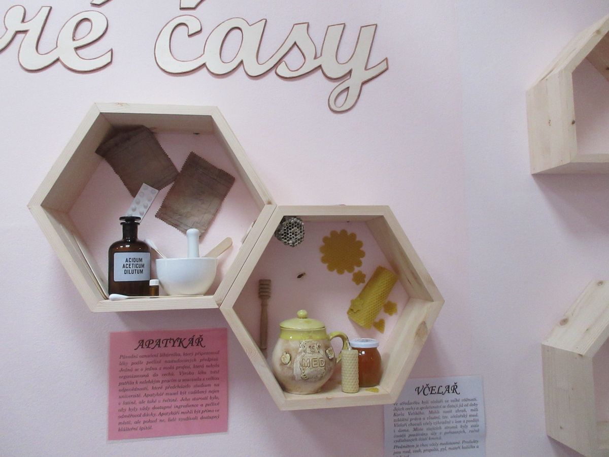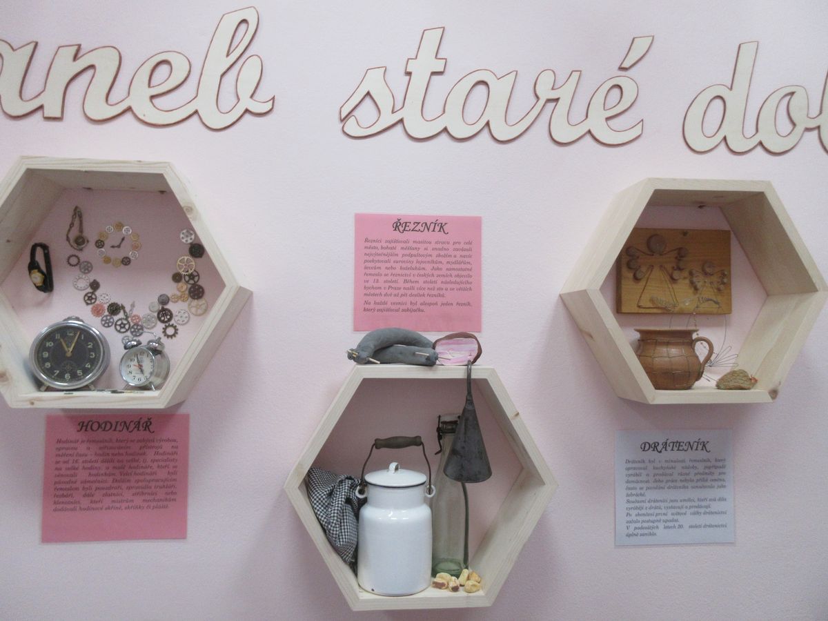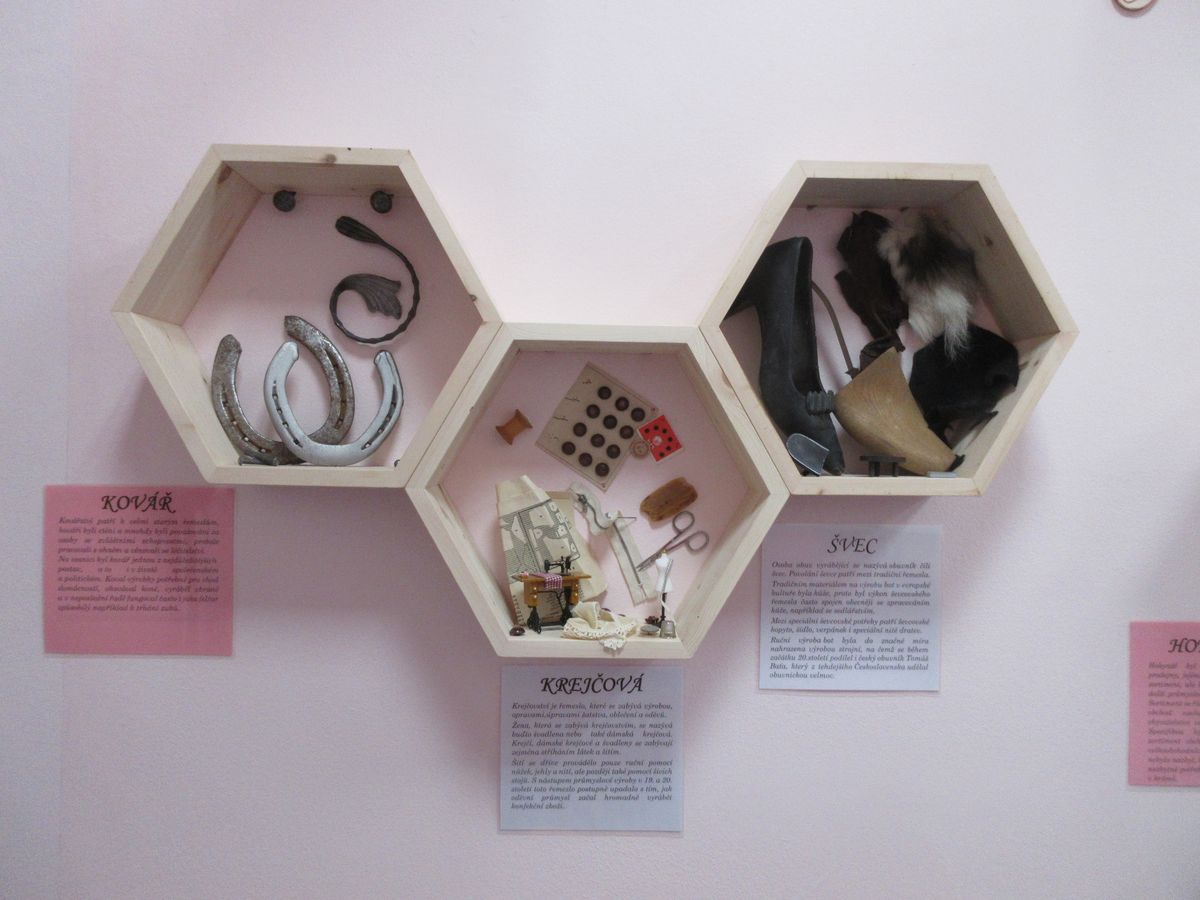 Pod tímto názvem je k vidění v přízemí modré budovy D instalace 10 různých řemesel. V šestiúhelníkových dřevěných policích se nachází předměty, které zastupují řemesla již zaniklá, ale i ta současná. Můžete si zde prohlédnout pravou kovářskou podkovu, prozkoumat nitro budíku do posledního ozubeného kolečka, zavzpomínat na to, v čem se odnášela zabijačková polévka, jaké zboží bylo kdysi k dostání u hokynáře, jak vypadá včelí plástev nebo v čem skladoval lékárník léky. Z těch běžných řemesel, které je Prostějovanům velice známé, je tu zastoupeno krejčovství v podobě nejrůznějších jehel, knoflíků, zipů, ale obdivovat zde můžete i miniaturu šicího stoje nebo krejčovské panny. Každé řemeslo má u sebe i psaný text, který ho v krátkosti představuje. Komu již zrak tolik neslouží nebo jen prostě nemá chuť ke čtení, tomu stačí zmáčknout tlačítko v jednom z domečků a z reproduktorů se ozve hlas, který představí jednotlivá řemesla a přidá i pověst, která se s daným řemeslem pojí.