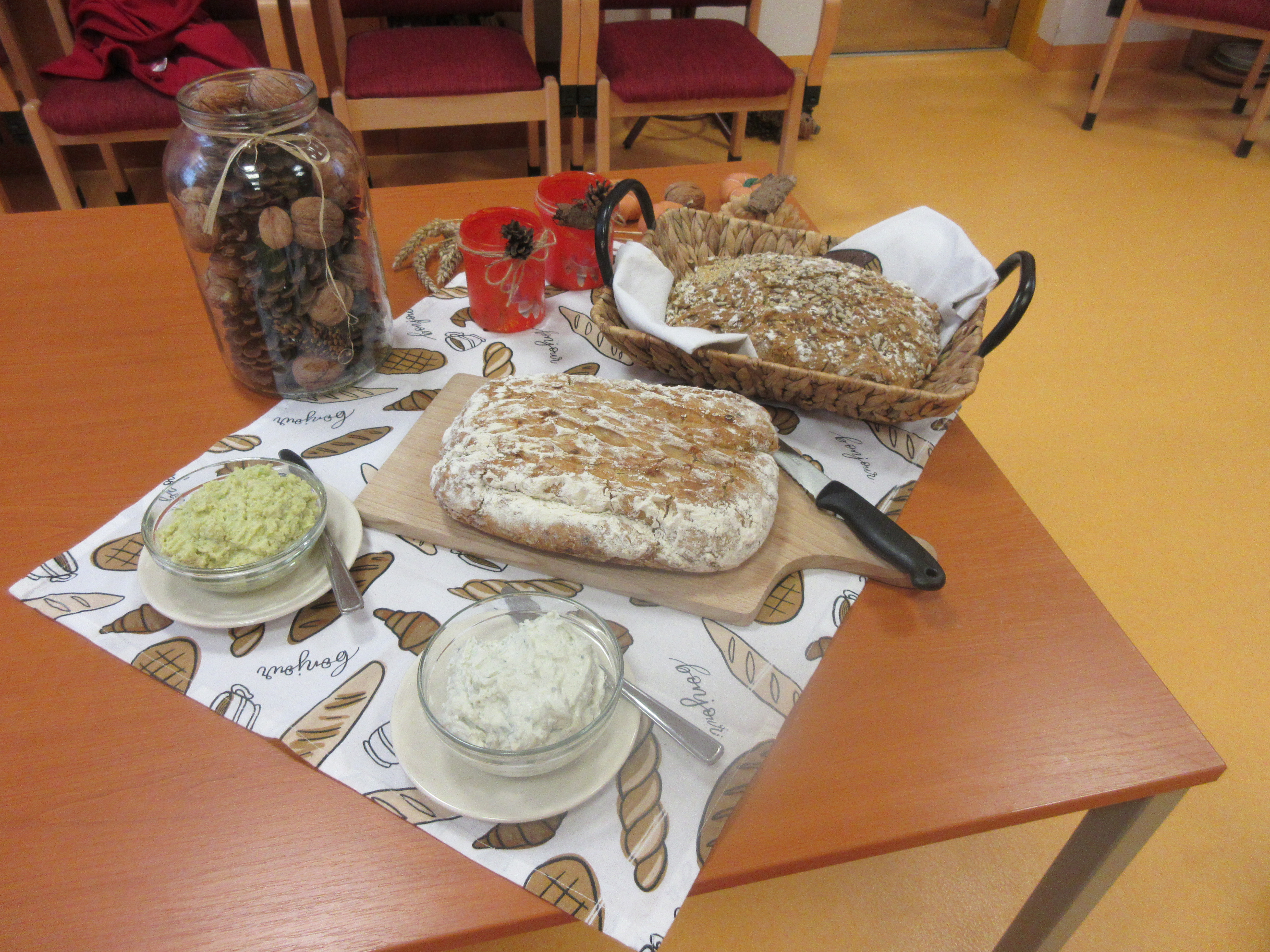 Děti ze spolupracující základní školy v ul. Dr. Horáka namalovaly krásné obrázky k tomuto tématu a všech 8 soutěžních družstev se pustilo do kulinářského zápolení. Vůně chleba provoněla všechny budovy v našem centru, každý chléb byl jiný, s fantazií a láskou vyráběný. Osvědčené recepty, zaručené rady a ty nejlepší ingredience měli k dispozici všichni. Ale zvítězit může jen jeden a o tom, kdo to bude, rozhodla porota složená ze zástupců kuchyně a vedení centra. Všechny chleby dle jejích slov byly skvělé, rozhodnout bylo neskutečně těžké. Vystavené pečivo bylo navíc řádně dekorované a krásně naservírované s typickými pochutinami k chlebu a o to víc tuto úlohu porotě ztížilo. Pomazánky, sádlo, škvarky, uzeniny a tradiční sůl nesměly chybět. Radost pro oko i mlsný jazyk. A kdo podle poroty upekl ten nejlepší chléb? Jako vítěz z tohoto zábavného klání odešlo družstvo z budovy E, druhé místo obsadili zástupci budovy H a na třetí příčce se umístilo družstvo z budovy F. Nejlepší trojice obdržela hodnotné ceny, ale ani ostatní neodešli s prázdnou, zástupce každé budovy si odnesl dárkový balík.