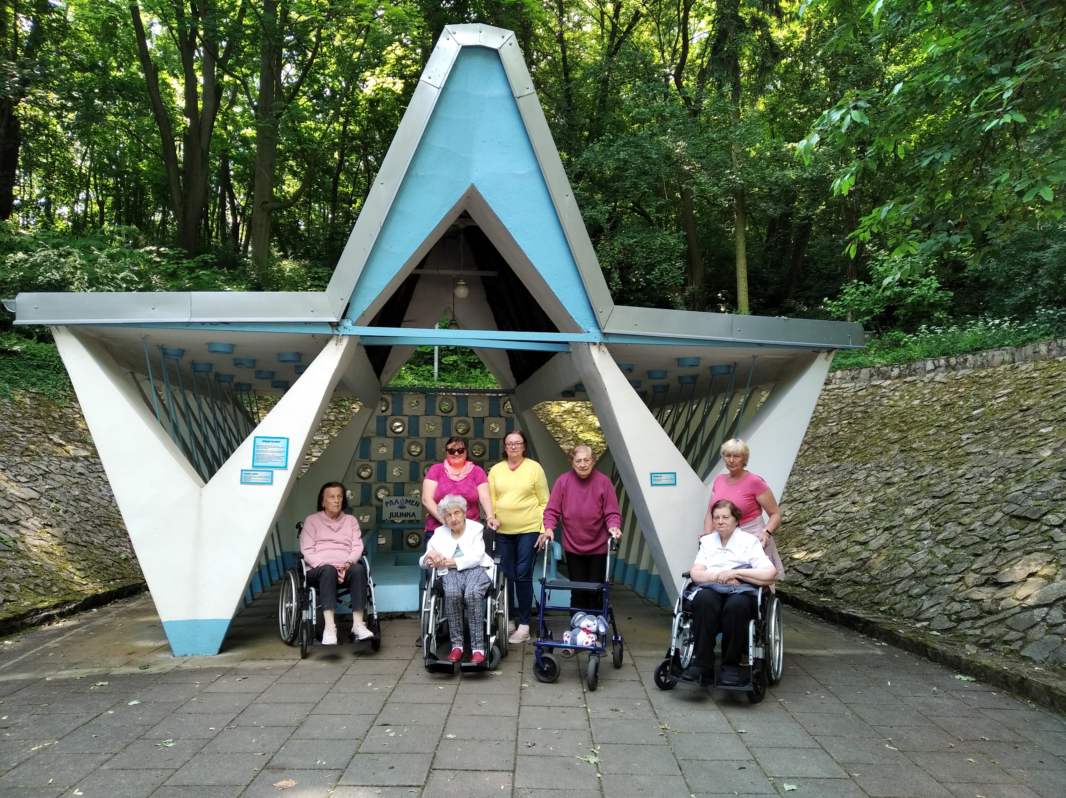 Ve středu 14. června 2023 jsme se s uživateli z budovy 13H vydali na dopolední výlet do lázní Skalka. Tyto lázně byly založeny roku 1928 a jsou od Prostějova vzdáleny jen 8 km. Procházkou rozkvetlým parkem jsme se dostali k léčivým pramenům, kde jsme si odpočinuli na lavičce a ochutnali léčivou vodu pramene Cyril, Metoděj a Svatopluk. Vodu z minerálních studánek pojmenovaných Jan a Julinka jsme pro jejich specifickou vůni neochutnali. Po odpočinku u pramenů jsme pokračovali v procházce k hřišti na minigolf a do lázeňské restaurace, kde jsme si pochutnali na kávě a zákusku. Na konci výletu jsme využili v lázeňském parku „Fitness pod širým nebem pro všechny generace“, které nabízí zábavné a snadné cvičení na fitness strojích v přírodě. Cestou k autu si naši senioři ještě koupili lázeňské oplatky a pak už jsme se vraceli zpět do Prostějova. Počasí nám přálo a z výletu jsme se všichni vrátili trochu unavení, ale spokojení a s úsměvem na tváři.