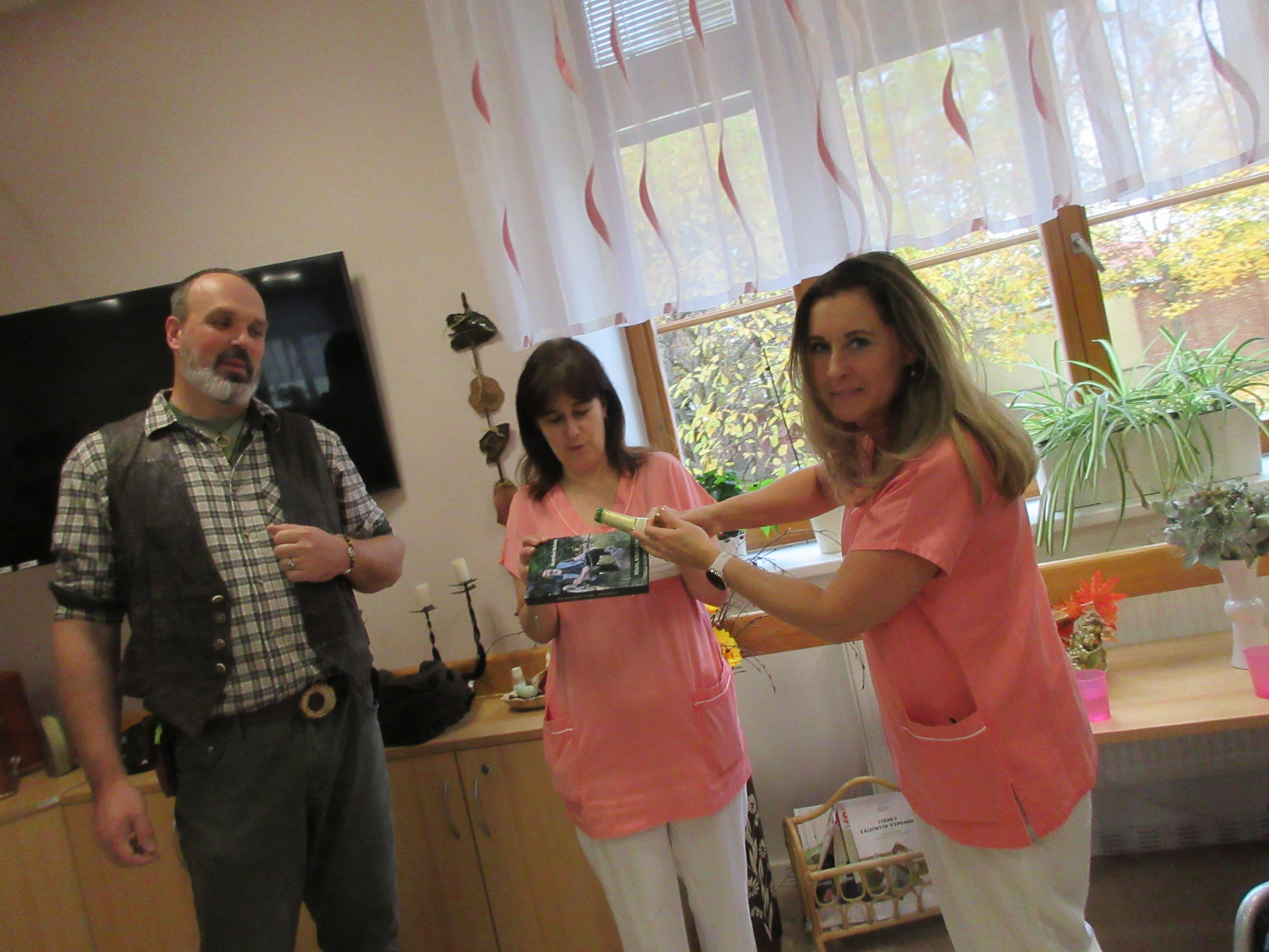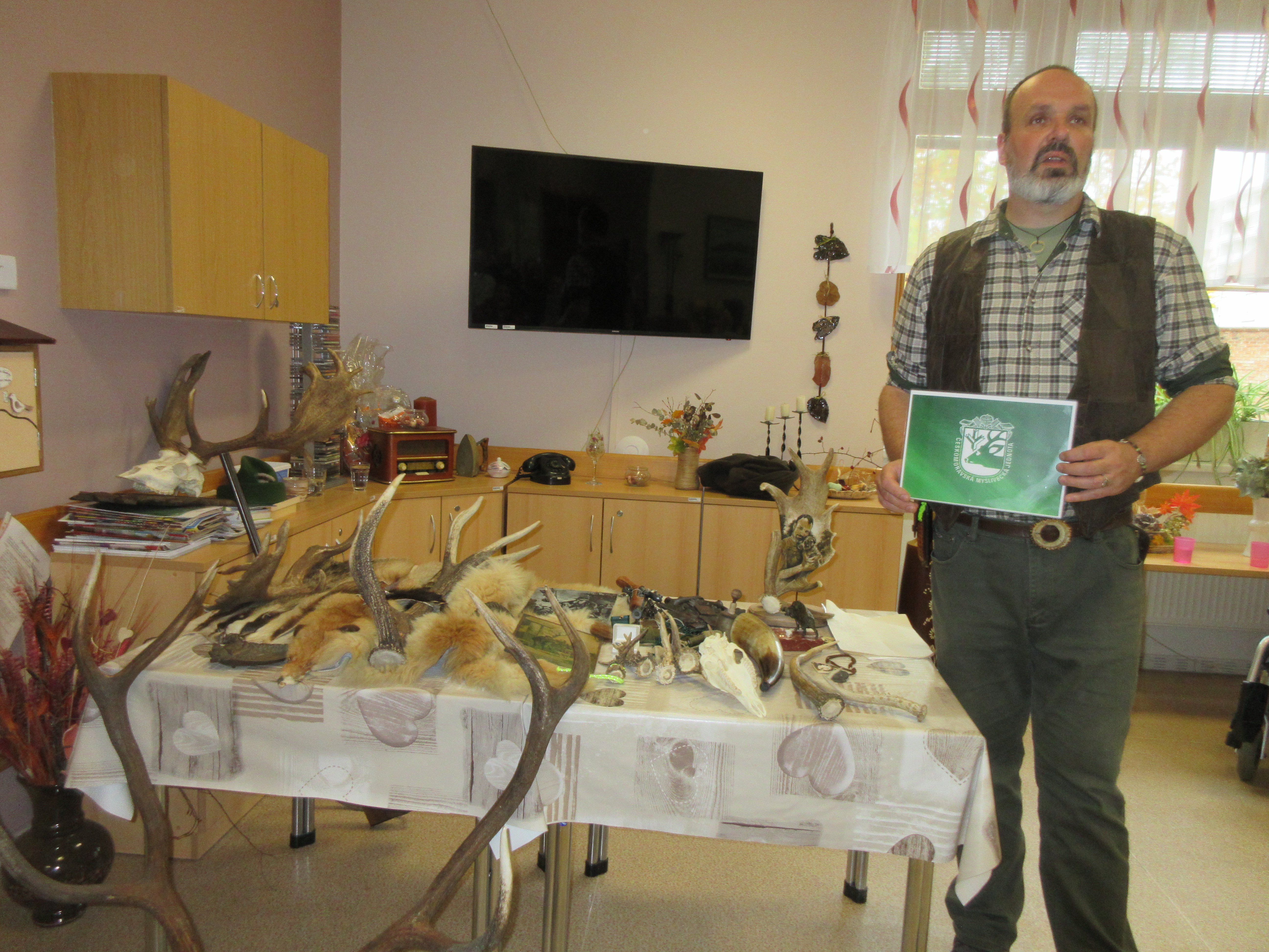 Již po několikáté jsme v Centru sociálních služeb oslavili říjnový svátek svatého Huberta. Opět nás navštívil myslivec, výjimečný člověk a také zaměstnanec našeho centra – pan František Mlčoch. Jeho poutavé vyprávění bylo věnováno péči o zvěř, životnímu prostředí dříve a dnes, mysliveckým tradicím, činnosti myslivců u nás a nechyběly historky z mysliveckého života. Účastníci besedy poznávali lovecké trofeje, shozy, kůže, prohlíželi si lebky, zbraně, šperky z paroží, dekorace a další předměty. Zájem o besedu byl veliký a bylo zaplněno do posledního místečka. Panu Františkovi jsme tentokrát přichystali překvapení, na které nebyl vůbec připraven, a tak byl velmi zaskočen a dojat. Jelikož napsal již dvě knížky, uspořádali jsme křest té poslední vydané. Nechybělo šampaňské, společný přípitek a Františkovy slzy dojetí, které nám byly odměnou za uspořádané „překvápko“.