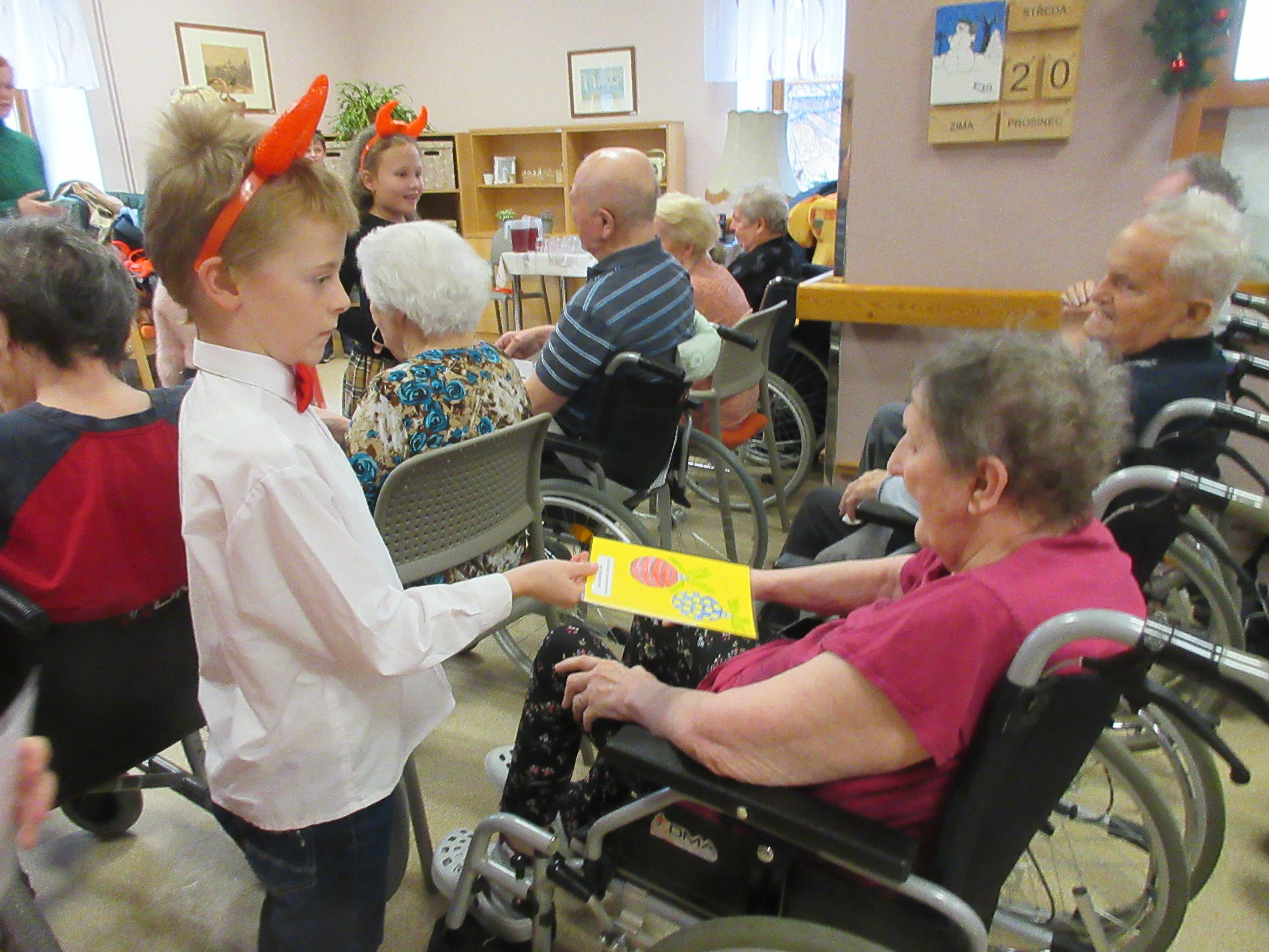 Pouhé čtyři dny zbývaly do Štědrého dne a naše zařízení navštívily v tomto předvánočním čase děti z Určic. Jako každý rok i letos si paní učitelky daly velkou práci s nacvičením hudebního pásma. Malí umělci krásně nastrojeni ve vánočním duchu každého dojali, rozesmáli a hlavně vánočně naladili. Recitace se sklopenými zraky a ruměnci ve tvářičkách těch nejmenších školáků byly tak milé a všechny pohladily po duši. Vždyť snad každý si rád zavzpomíná na dobu, kdy byl malý a tohle zažíval. Proto měl každý pochopení a ocenil snahu a dovednost školáčků. Tanečky v páru na krásnou vánoční hudbu byly pomyslnou třešničkou na dortu. Individuální výkony malých umělců na hudební nástroje a sehraná scénka v tomto povedeném pásmu také nechyběly.