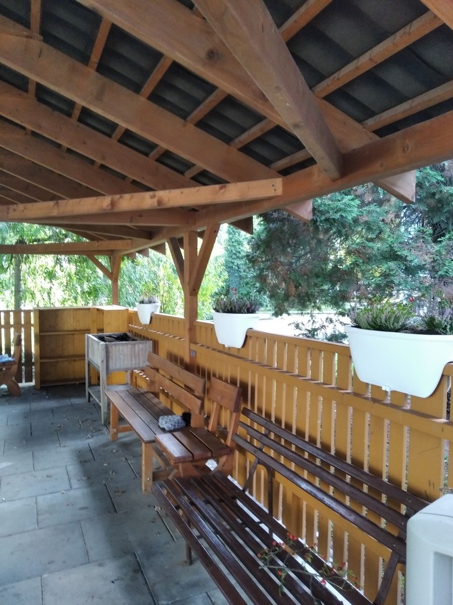 V každé pěkné zahradě nebo parku je velice vítaným prvkem posezení nebo odpočinkový kout. Dřevěný altán se v parku našeho centra nachází v blízkosti budovy D již delší dobu, ale usoudili jsme, že by bylo skvělé ho „oživit“ něčím novým, dát mu nové prvky a doplňky.